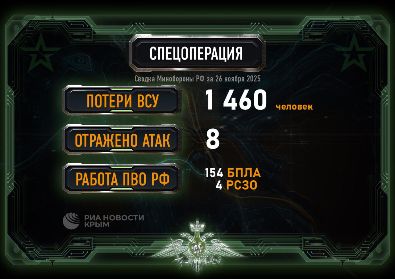 В среду, 26 ноября, средства противовоздушной обороны уничтожили украинский беспилотник над Крымом. Об этом сообщили в пресс-службе Минобороны России.Киевский режим пытался атаковать нашу страну в период с восьми утра до полудня.«Дежурными...