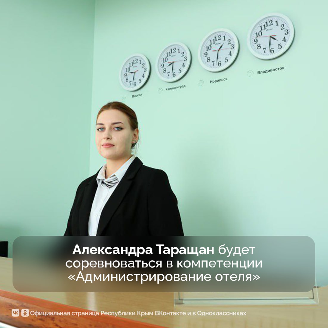 Наши конкурсантки Александра Таращан и Лемара Абкеримова поборются за победу в двух компетенциях «Администрирование отеля» и «Туризм». Они расскажут о разработке новых туристских маршрутов и об особенностях качественного размещения в Крыму.