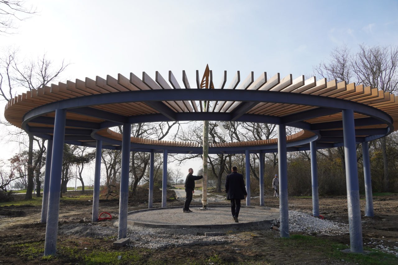 Территория преображается: завершается мощение прогулочных аллей, смонтированы основные арт-объекты – «Троянский конь», «Стрела Париса», «Ахиллес и черепаха».