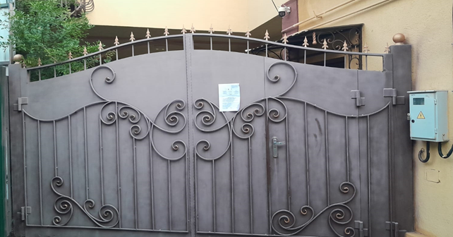 двухстворчатые ворота, изготовленные из металла в количестве 1 (одной) единицы, размер – 2,4 м.(высота) х 4 м. (ширина)