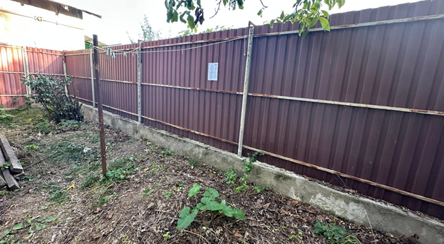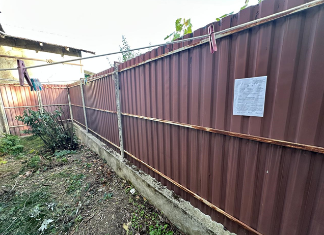 забор из металлопрофиля, коричневого цвета, в количестве 1 (одной) единицы, размер – 14,30 п.м.