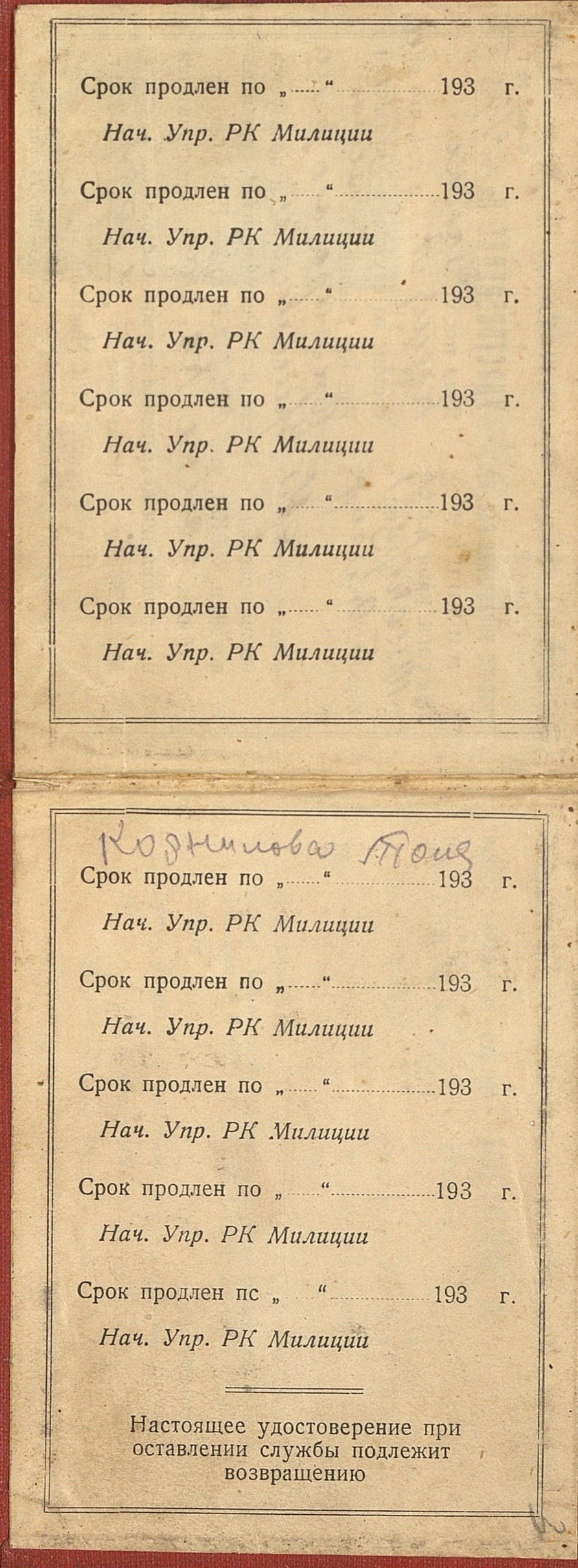 Государственный архив Республики Крым продолжает знакомить с редкими и уникальными документами из архивных фондов. Вниманию читателей представляется удостоверение сотрудника рабоче-крестьянской милиции Крымской АССР по Биюк-Онларскому району (в настоящее время Красногвардейский район). Документ датирован 1931 годом и был выписан на Бойко Ксению Андреевну. Согласно тексту Ксения Бойко находилась в должности младшего милиционера и пользовалась всеми правами, льготами и преимуществами, установленными Положением о рабоче-крестьянской милиции, утвержденным Советом Народных Комиссаров СССР от 25 мая 1931 года. Документ был действителен до 1 мая 1932 года и позже не продлевался. Можно предположить, что столь краткий срок работы в территориальных органах милиции был связан с традиционной практикой комсомольских наборов, а также кадровой политикой в межвоенные годы. Скорее всего, после недолгой службы в органах Ксения Андреевна была переведена на другую работу.