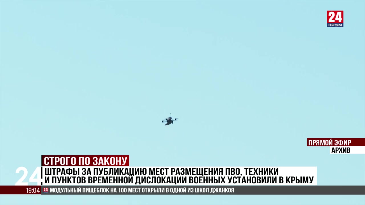 Штрафы за публикацию в интернете мест размещения ПВО, техники и пунктов временной дислокации военных установили в Крыму. Закон принят во втором и окончательном чтении. За нарушение запрета для физических лиц сумма составит от 3 до 5 тысяч рублей, для должностных – от 20 до 50 тысяч, а для юридических лиц – от 50 до 100 тысяч рублей. Такие же суммы придётся заплатить за съёмку и распространение фото и видео о последствиях террористических ударов врага по Крыму.