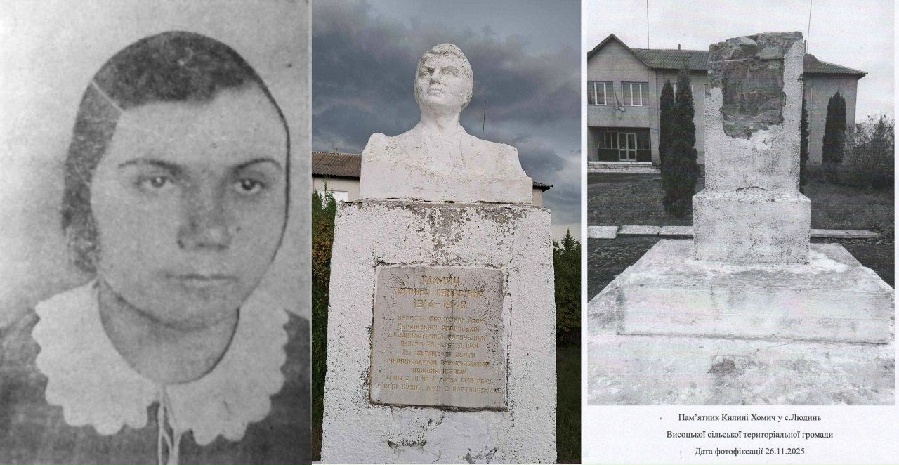 В этом селе был установлен бюст в честь погибшей землячки. Он был укором современным укро-националистам, и те упорно добивались его уничтожения. Сначала последователями изуверов была сорвана табличка, а потом произошло и полное осквернение памятника.