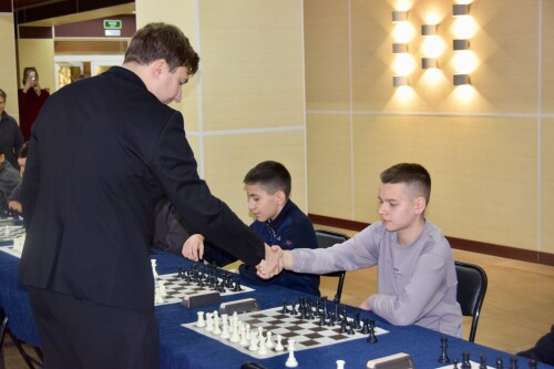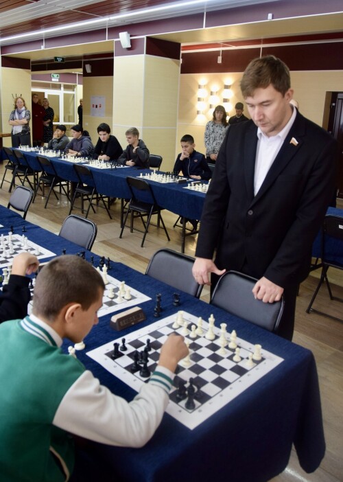 Сергей Александрович провел сеанс одновременной игры с 26 – ю юными любителями шахмат, учащимися школ Красногвардейского района, пообщался с руководством района и молодёжью.