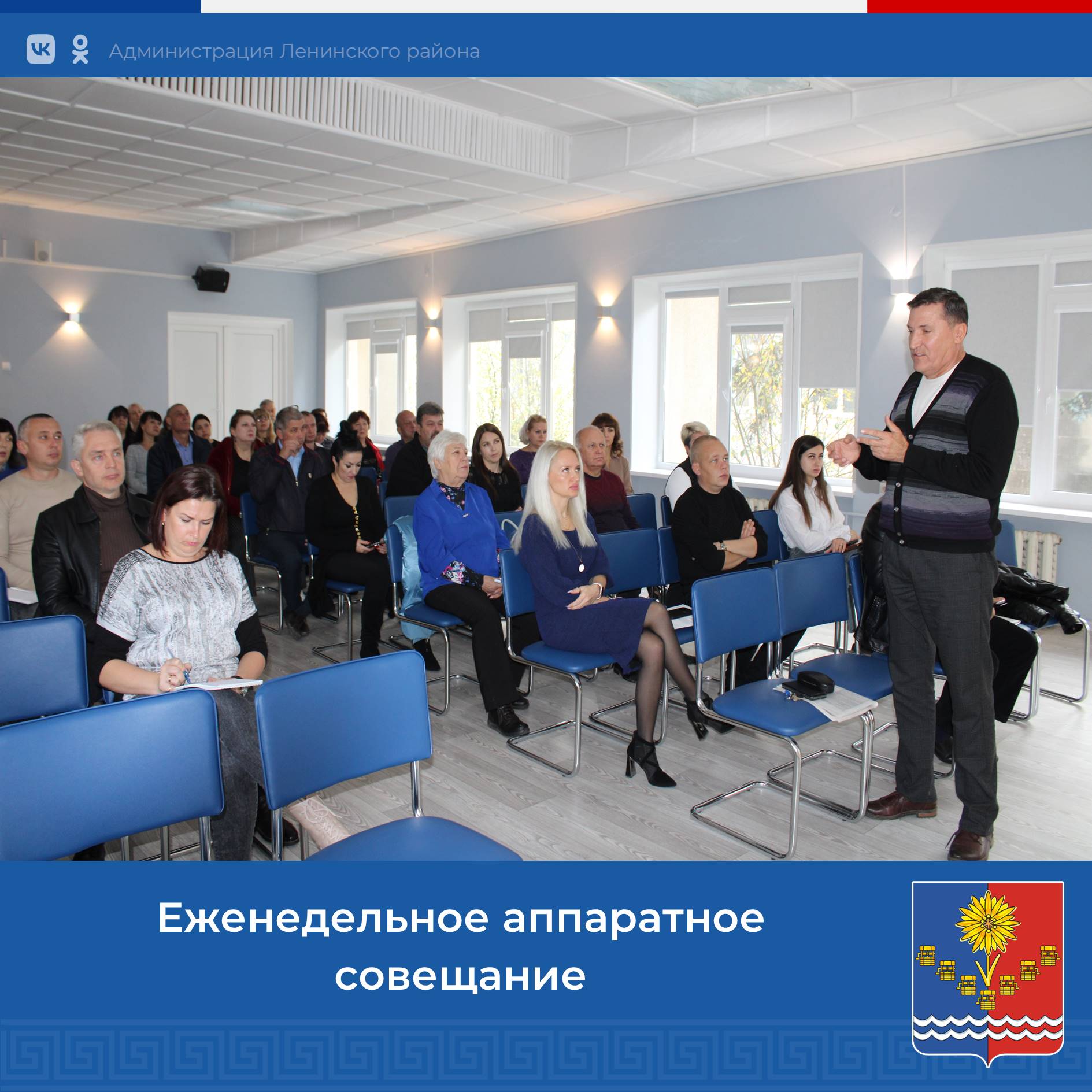 Первый заместитель главы администрации района Александр Саенко при участии председателя районного совета Виктории Заботиной провел очередное еженедельное аппаратное совещание с главами поселений и руководителями ресурсоснабжающих организаций.