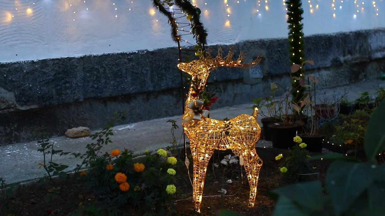 Его своими руками украсили жители дома N101 на улице Гавена. Говорят, что такое масштабное преображение территории сделали впервые. Среди декораций – гирлянды, банты, шары и светодиодные фигуры.