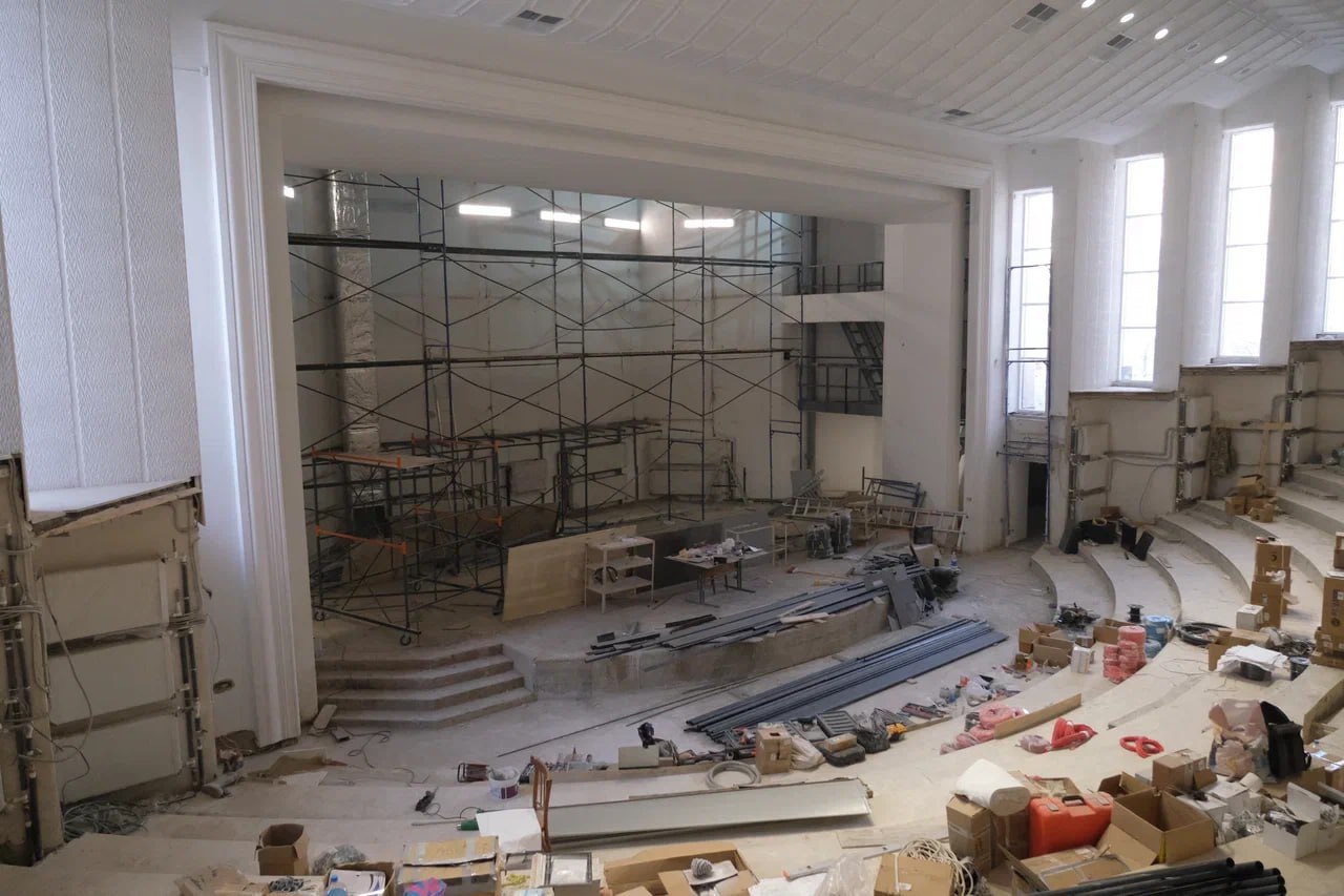 В Большом зале процент готовности ниже. Там возникли сложности с отоплением и демонтажем. Однако "это не снимает с подрядчика задач по срокам сдачи объекта".