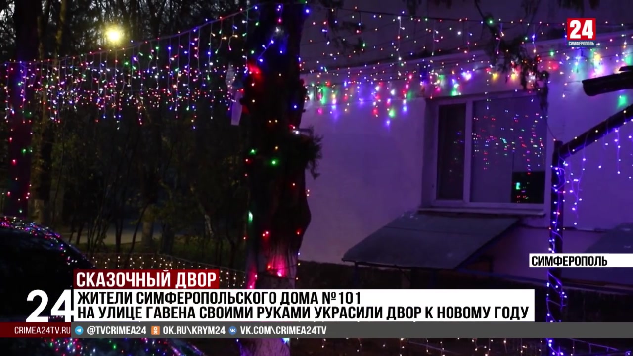 В Симферополе появился новогодний двор. Его своими руками украсили жители дома N?101 на улице Гавена. Говорят, что такое масштабное преображение территории сделали впервые. Среди декораций –В гирлянды, банты, шары и светодиодные фигуры.