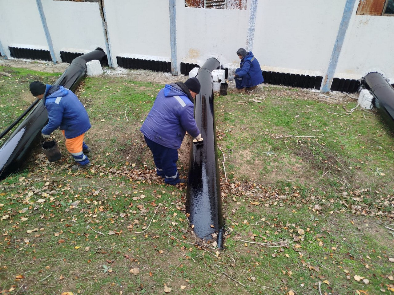 ГБУ РК «Крыммелиоводхоз» продолжает выполнение комплекса ремонтно- уходных работ в рамках государственного задания на 2025 год. Так, в Раздольненском филиале бригадой осмотрщиков Березовского участка оросительных систем выполняются работы по окраске разжиженным битумом трубопроводов и цоколя зданий насосных станций №540, №570, №571, №573. Данные работы позволяют обеспечить безопасность гидротехнических сооружений.