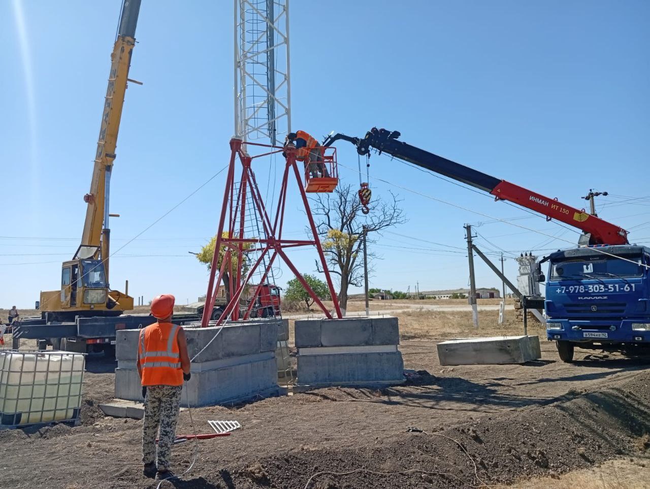 Кроме того, для остальных 34 вышек сейчас проводятся работы по подготовке оснований под фундаментные плиты и сборке конструкций.