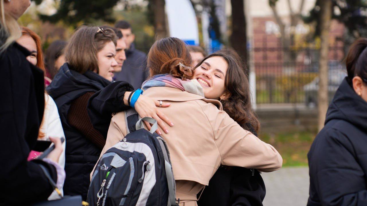Участники уже прибыли на площадку и прошли регистрацию, получив фирменные наборы мерча. С первых минут атмосфера наполнилась движением: ребята знакомятся, обсуждают идеи и сразу включаются в работу.