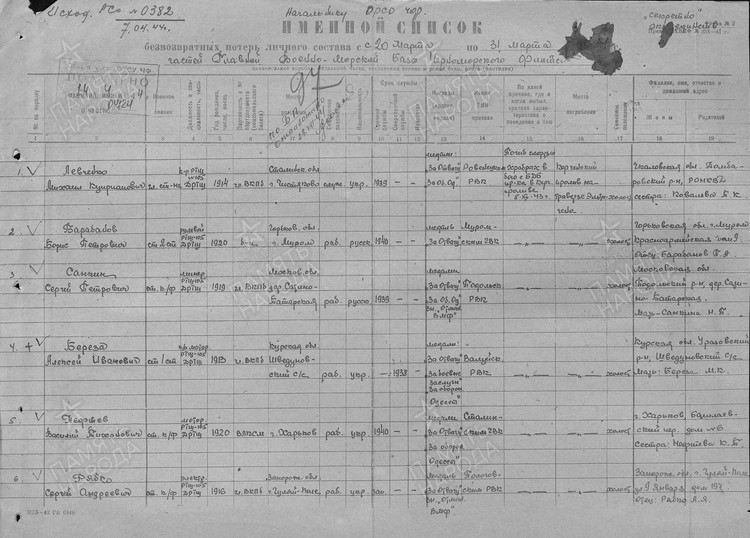 - Михаил Куприянович Левченко родился в 1914 году в Сталинской области (ныне ДНР), городе Чистяково. Призван Ровенецким РВК. В карточке воина указано, что его сестра Ковалева Т.К. проживала в Чкаловской (Оренбургской) области, Домбаровский район. Работала в РО НКВД (Народный комиссариат внутренних дел - ведомство по охране госбезопасности).
