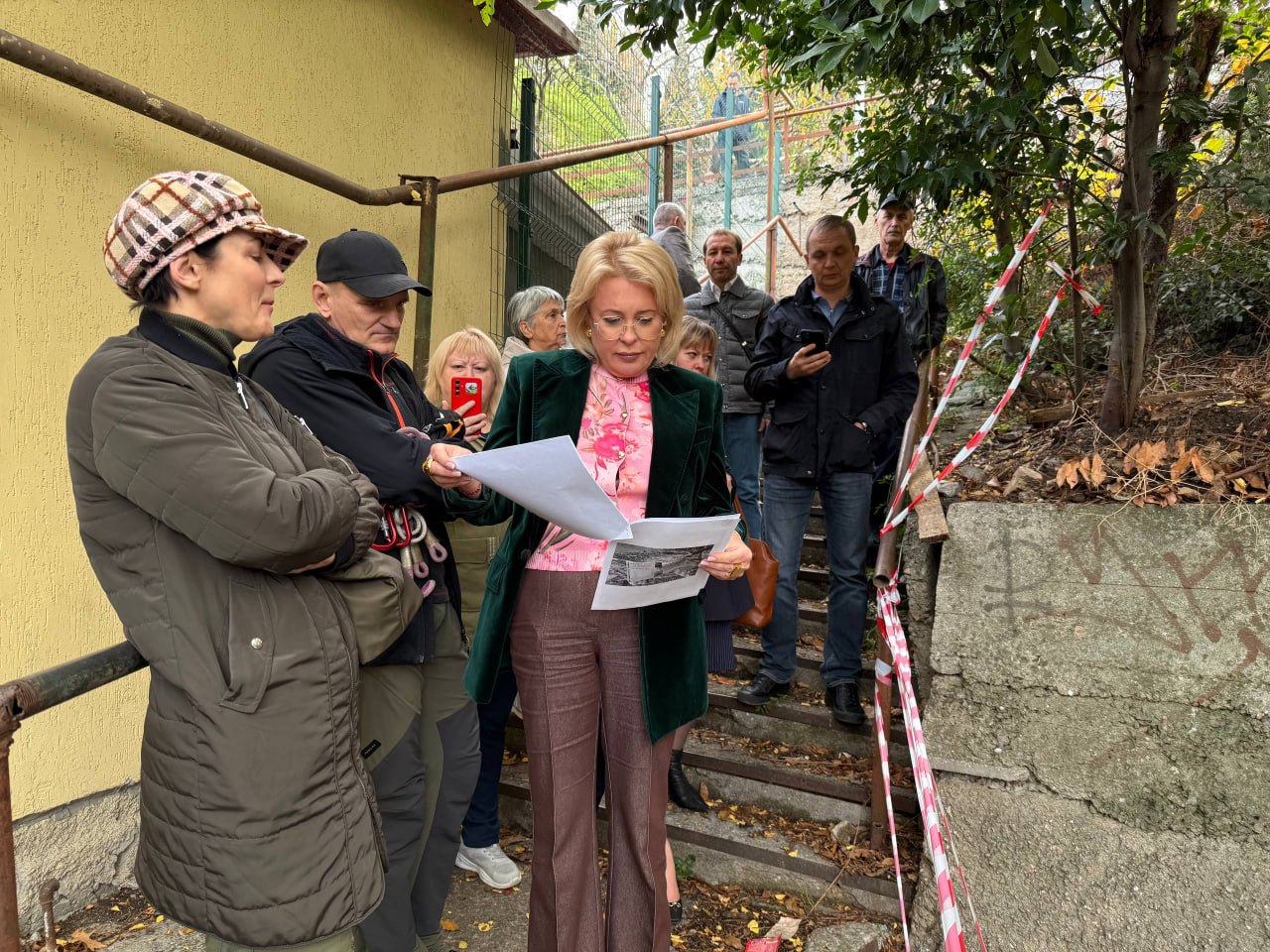 Главный вопрос - ремонт подпорных стен, которые располагаются на откадастрированной территории МКД. То есть именно жильцы должны нести бремя их содержания. Понимаем, что это непосильно, город готов принять их на баланс и закрепить за нашим ДЭУ. Однако стоит понимать, что тогда в муниципальную собственность перейдет и земельный участок, так как стены идут каскадом. Откадастрирована была большая территория, которая «относилась» к дому исторически. Сегодня она находится еще и в ненадлежащем санитарном состоянии. Это вторая проблема. При этом жители хотят, чтобы земля осталась за ними, а ремонт и уборку взял на себя город. Еще раз пояснила – так не бывает! Имущество содержит и ремонтирует собственник. Есть вариант отказаться от проблемной избыточной территории, но решение должно быть закреплено общим собранием.