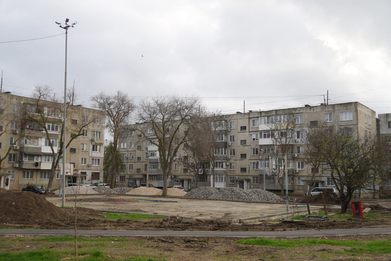 Одновременно с этим подрядная организация выполняет строительно-монтажные работы во дворе по ул. Буденного, 15 и ул. Блюхера, 4. Здесь рабочие занимаются установкой бордюров и распределением функциональных зон для будущих площадок. На этой придомовой территории также появятся новые детские игровые элементы, а спортивная площадка для занятий уже имеется.