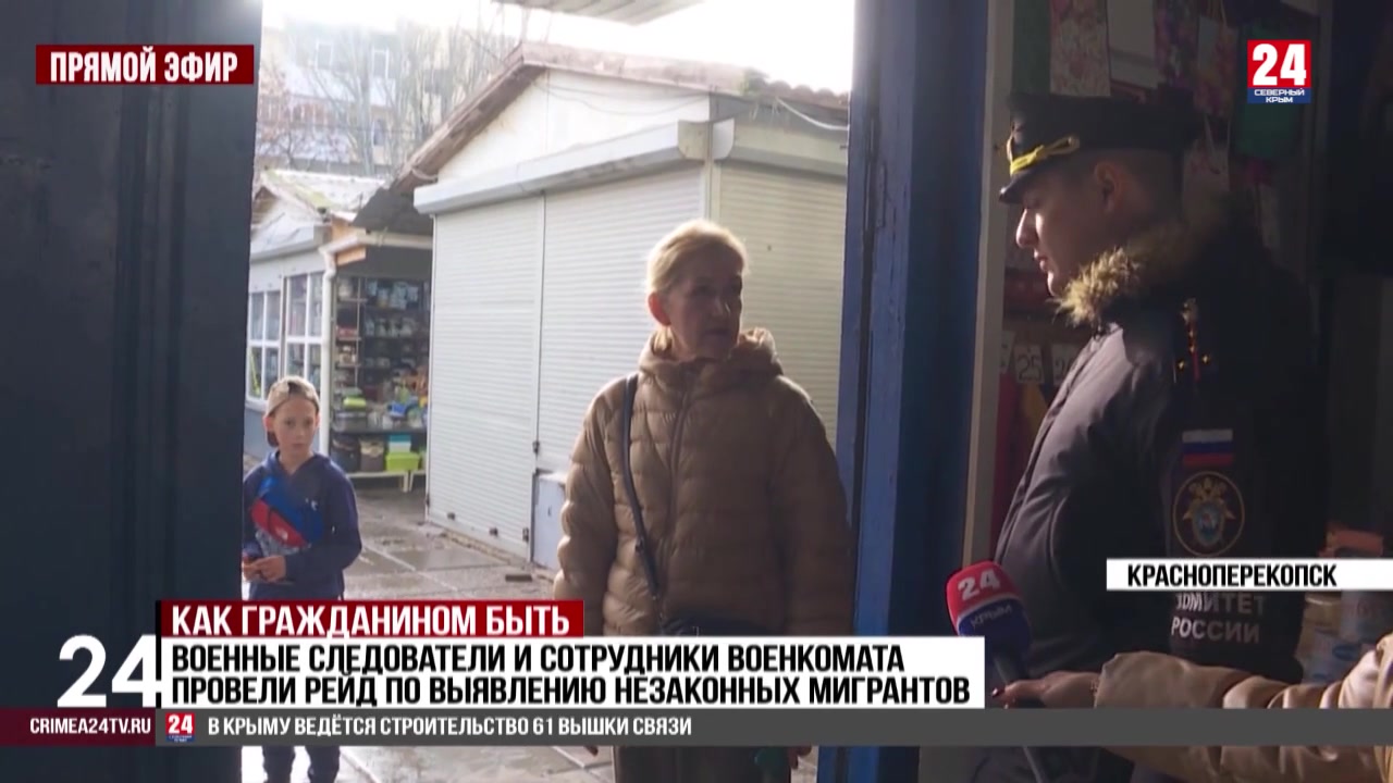 Строительные объекты, туристическая сфера и торговля. Военные следователи продолжают рейды по выявлению мигрантов, незаконно прибывающих в нашей стране, и граждан Российской Федерации, которые не встали на воинский учёт. На этот раз с проверкой заглянули на центральный рынок Красноперекопска. Сотрудникам ведомств и ОМОНу многие были не рады. Подробности – в сюжете.