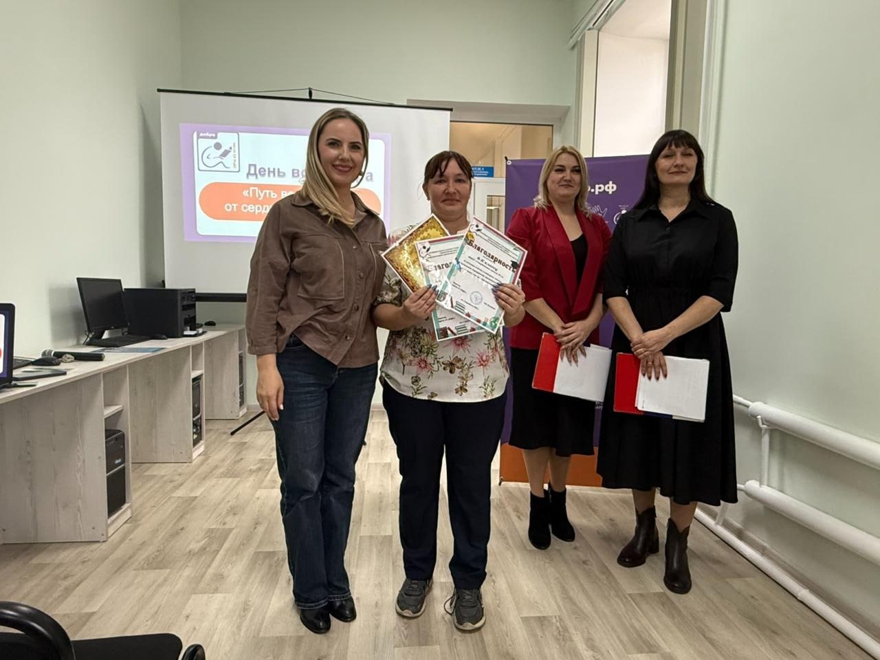«Добро.Центр» на базе центральной библиотеки стал местом реализации долгосрочных проектов, площадкой для общения и работы волонтеров, организации и проведения презентаций, встреч, уникальных обучающих программ, исследовательской деятельности по мониторингу и аналитике данных региона. Сегодня мы вручаем «Личные волонтерские книжки» и это – поощрение волонтеров, признание их важной деятельности.