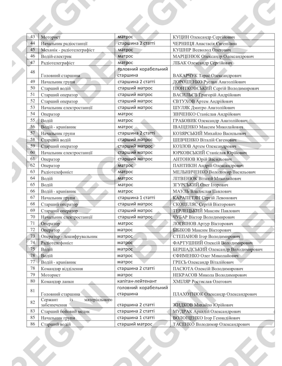 Также мы публикуем весь список личного состава первого дивизиона безэкипажных надводных комплексов воинской части А4770, ещё несколько человек из которого мы установили и выложили на сайте.