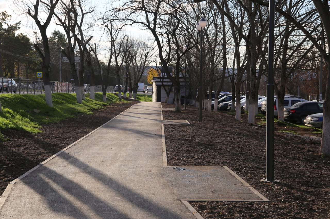 На текущий момент выполненных работ — 90%, установлено освещение, пешеходная дорожка полностью заасфальтирована.