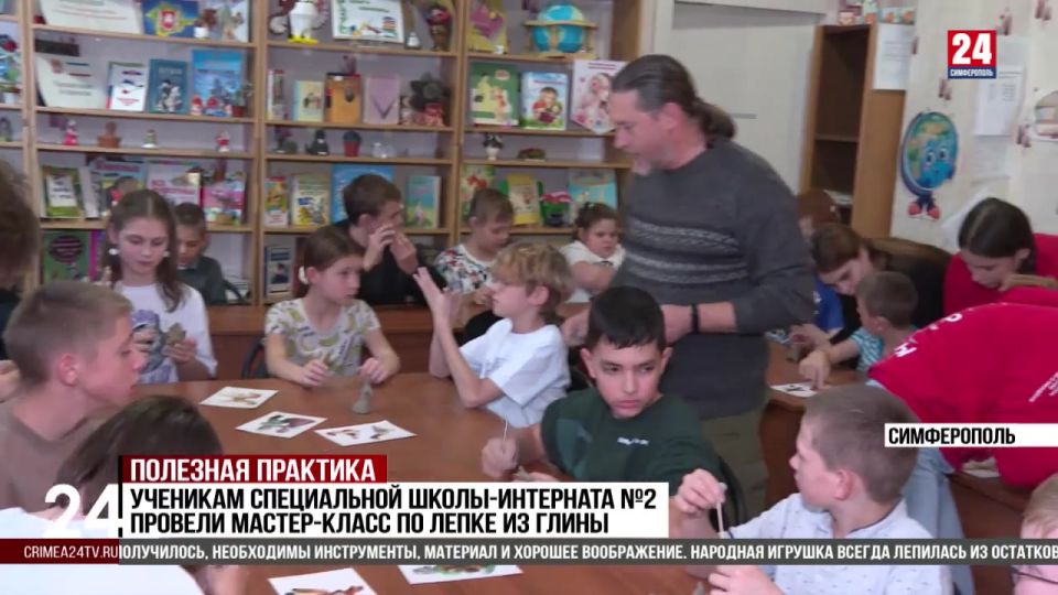 Творческий досуг и развитие детской сенсорики. Ученики симферопольской специальной школы №2 познакомились с ремеслом лепки из глины и проявили воображение, создав авторскую народную игрушку. Что получилось у юных мастеров? Расскажет корреспондент телеканала «Симферополь 24» Рената Карауш.