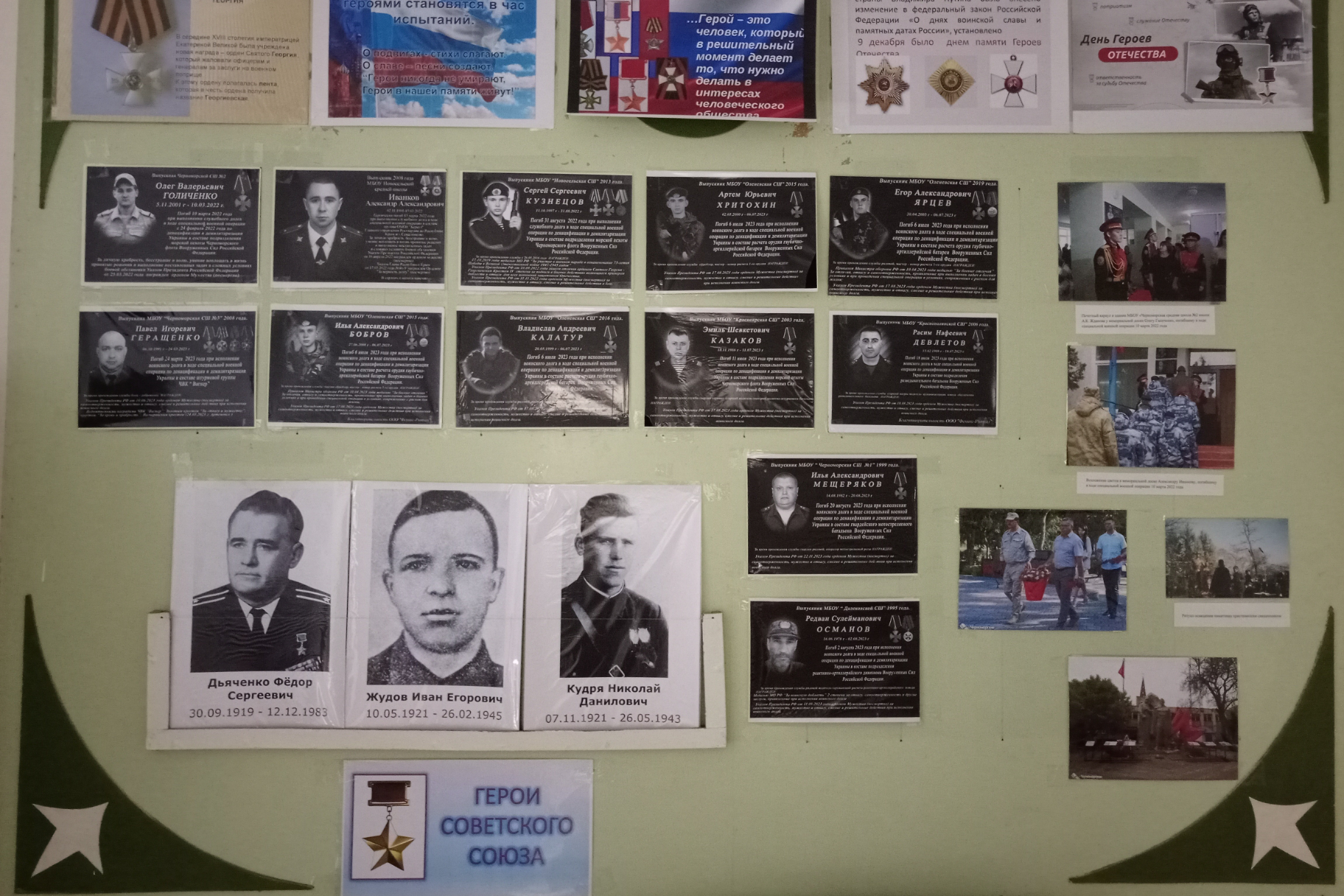 На выставке представлены фотографии из коллекции фотодокументов по истории Черноморского района «Специальная военная операция» наших земляков – героев, ставших образцом истинного патриотизма и беззаветного служения Отечеству в наши дни.