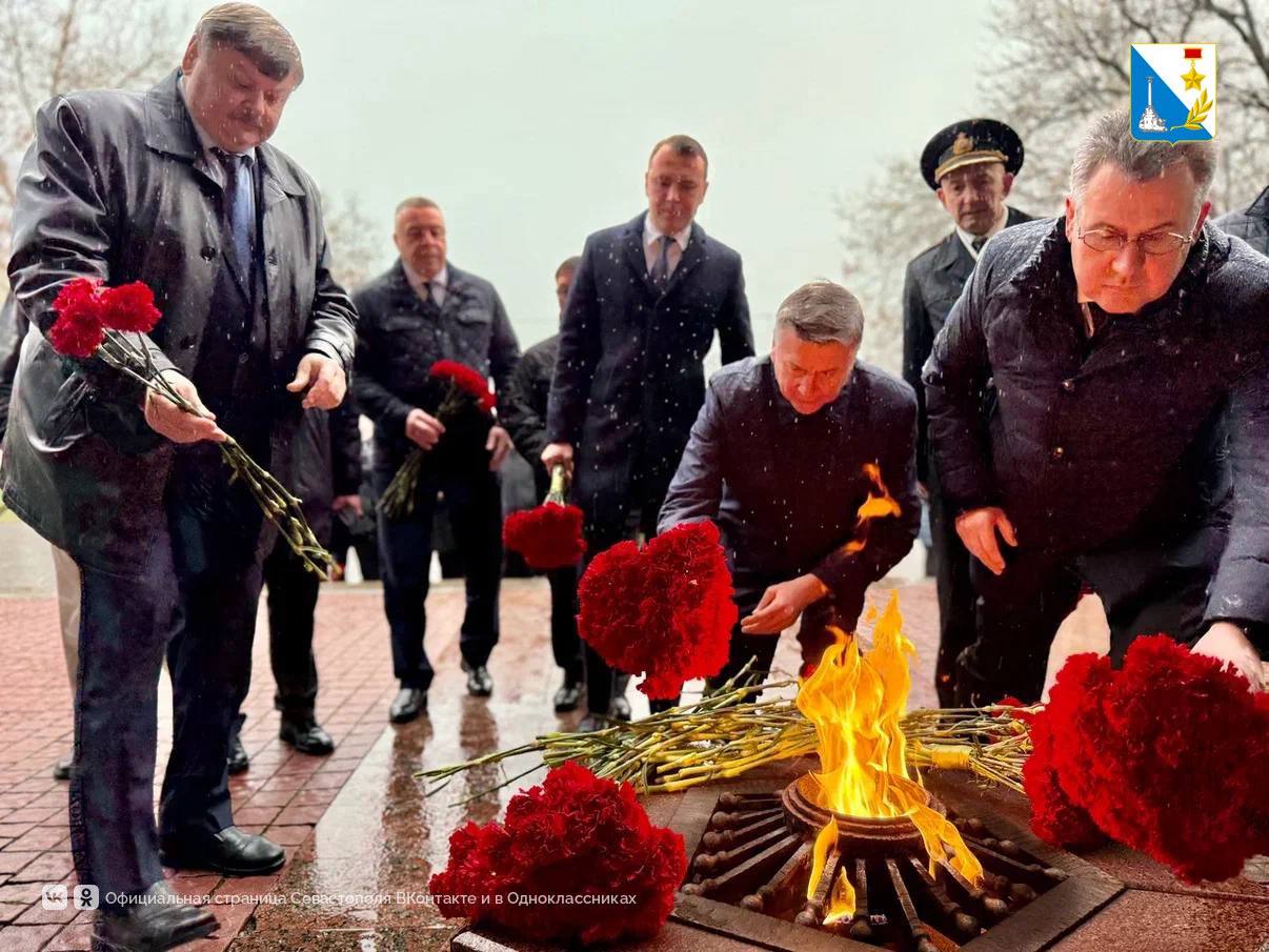 В честь защитников вице-губернаторы, депутаты, ветераны, участники программы «Севастополь — город Героев» и общественники возложили цветы к вечному огню у Мемориала героической обороны Севастополя.
