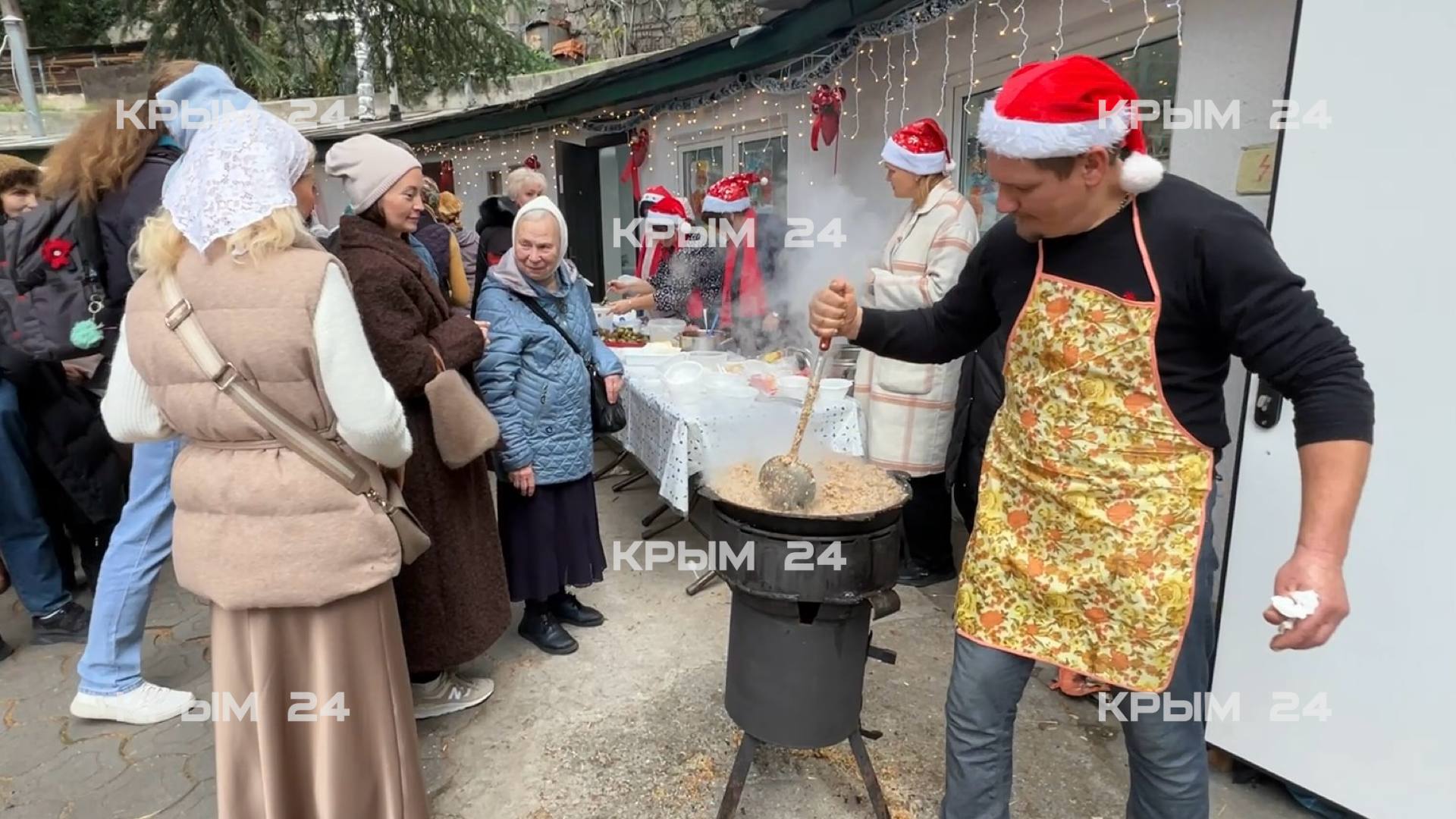 По традиции всех угостили Николиной кашей. Её на месте приготовили из перловой крупы с добавлением лука и грибов.