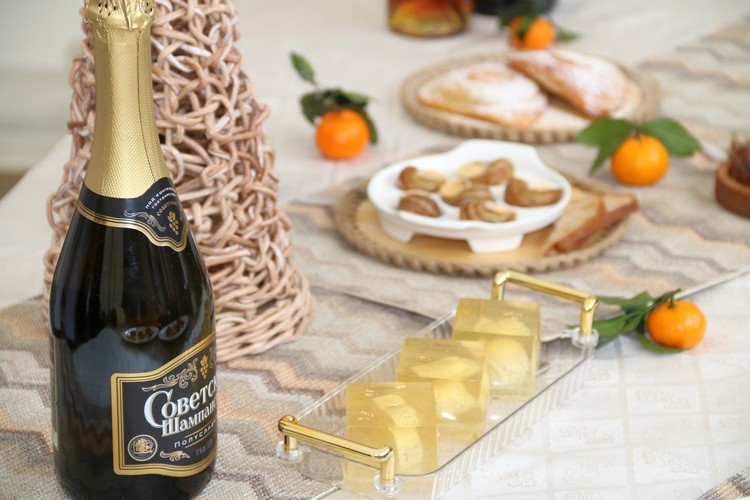 Новогодний крымский десерт не может быть похожим на стандартное угощение, решили на улиточной ферме «Мама Дёма» и создали неповторимое желе из шампанского и муцина улитки.