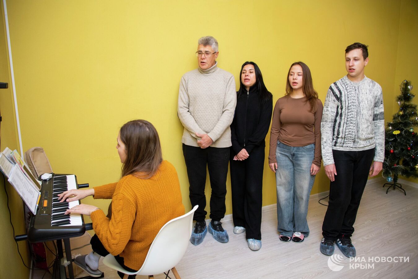 "Самое сложное - собрать всех вместе на репетицию. Ведь люди взрослые, у всех дела-заботы. Конечно, отклик в процессе работы замечательный! Очень стараются! Но вот регулярно выкраивать время для репетиции получается не у всех", - признается корреспонденту РИА Новости Крым преподаватель эстрадного вокала, руководитель хора Оксана Тригуб. И мудро замечает: "Работая со взрослыми, нужно иметь чуть больше принятия, не нервничать, а понимать, что ситуации бывают разные".Сейчас в хоре десять человек. К началу репетиции собираются всего четверо. Еще двое подтягиваются немногим позже. Объясняют: день суматошный, вечерний час-пик, в городе пробки.