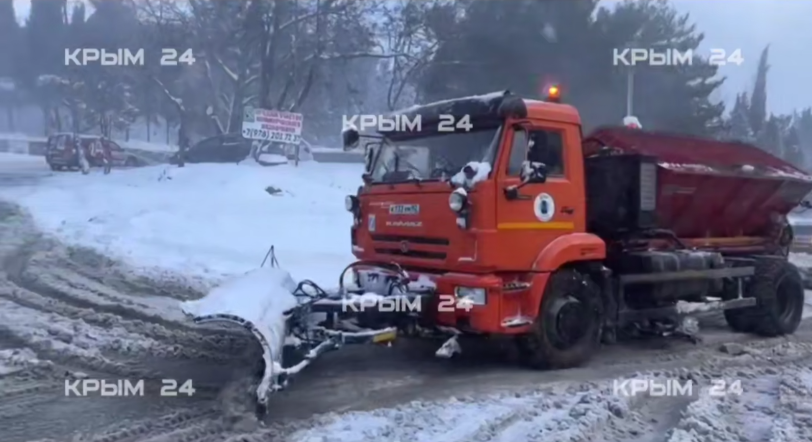 Дороги Южного берега Крыма расчищают 12 машин городского спецтранспорта, ещё четыре работают на республиканских трассах, передает корреспондент «Крым 24».