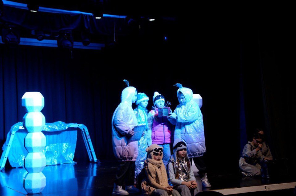 Зрители с интересом наблюдали за происходящим на сцене. Театральные постановки получились красочными, яркими и музыкальными, а разноцветные, сверкающие гирлянды и ярко украшенная елка создали атмосферу праздника и чуда.