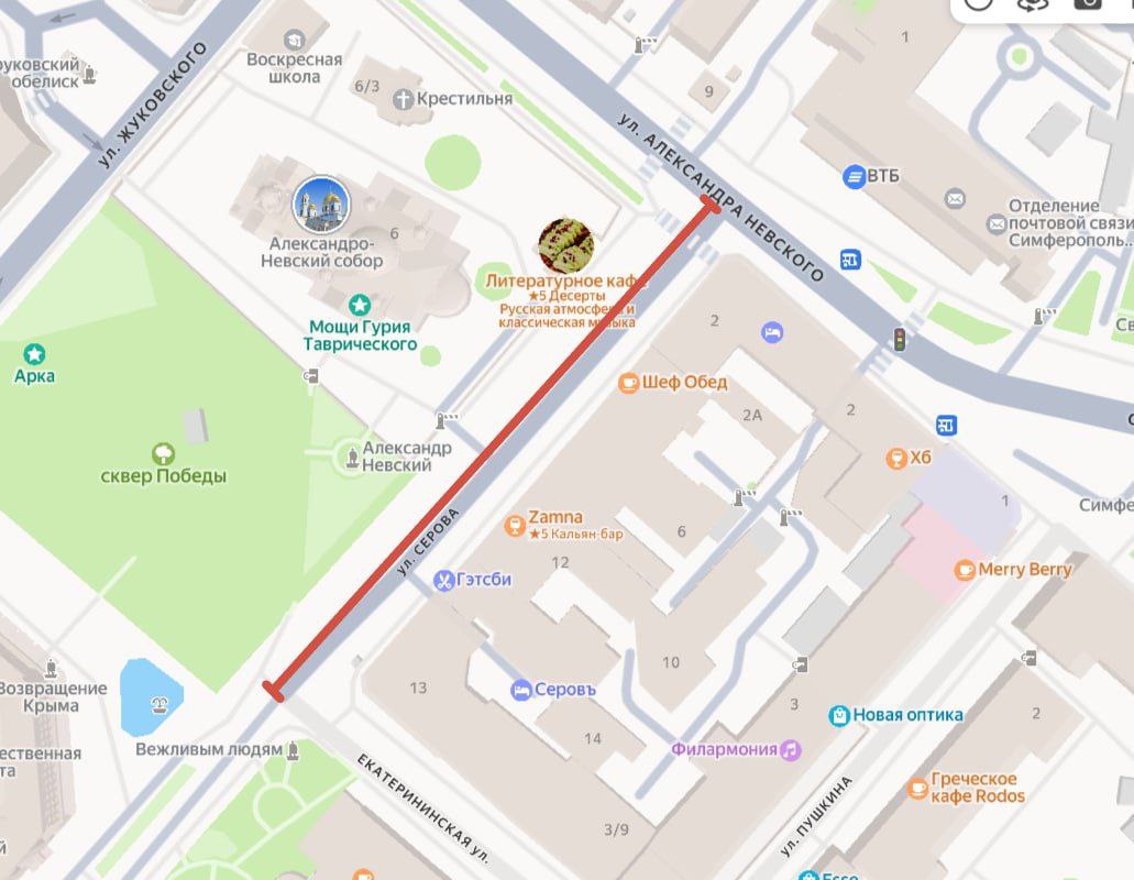 В Симферополе с 4:00 до 12:00 10 января перекроют часть улицы Серова из-за проведения мероприятия у Александро-Невского собора. Об этом сообщили в пресс-службе администрации столицы Крыма.