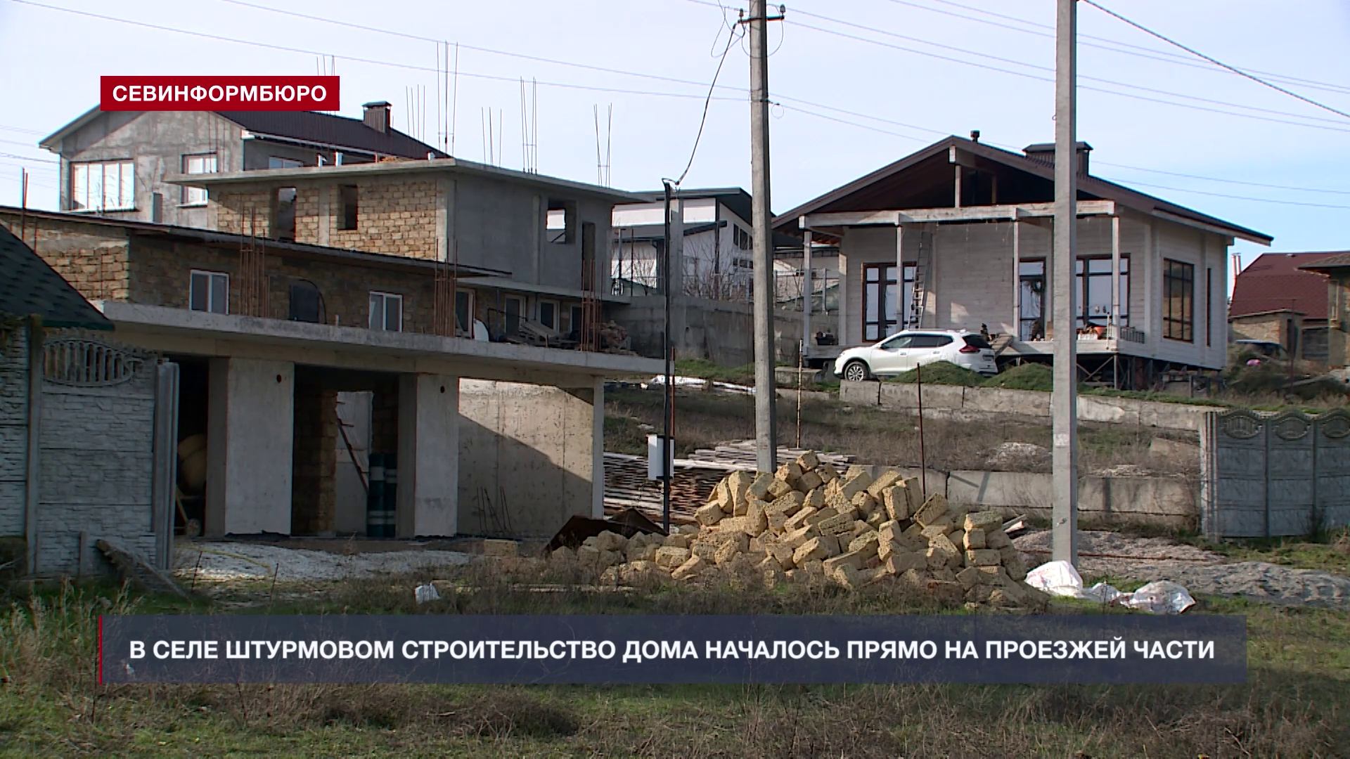 В селе Штурмовом строительство дома началось прямо на проезжей части. Новый участок, внезапно появившийся на кадастровой карте Севастополя, перегородил дорогу местным жителям – теперь у них нет проезда к своим участкам. Департамент по имущественным и земельным отношениям Правительства Севастополя утверждает, что всё законно.