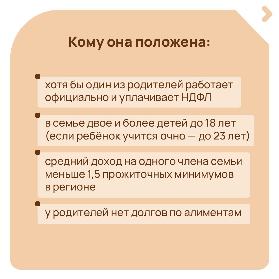 Одно из главных условий — среднедушевой доход семьи не должен превышать полутора региональных прожиточных минимумов. Так, поддержку получат те, кто в ней действительно нуждается, но при этом официально работает и платит налоги.