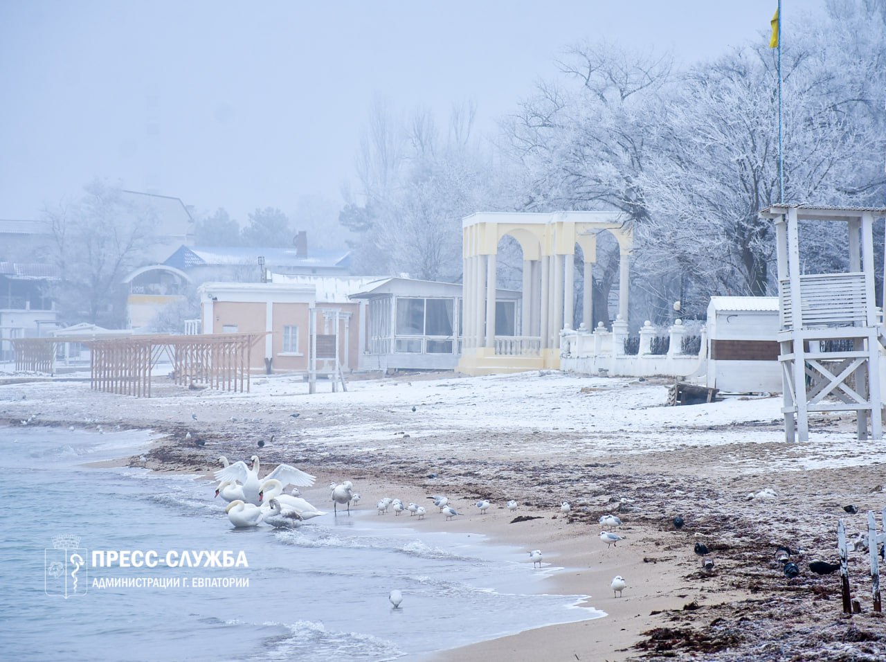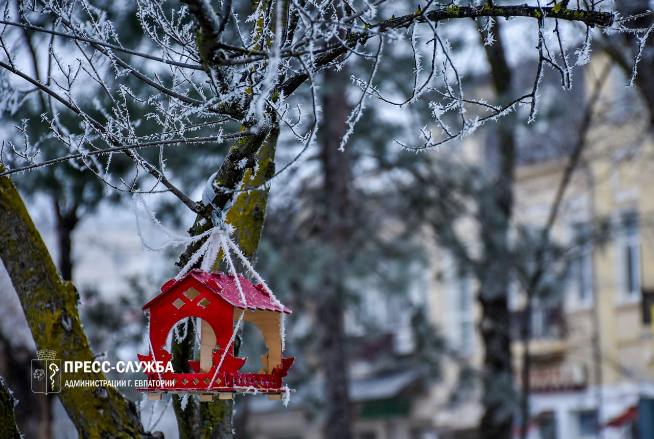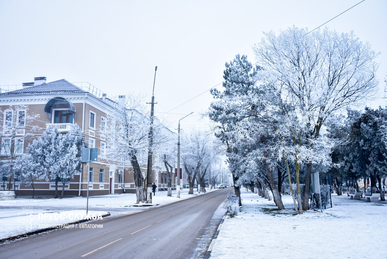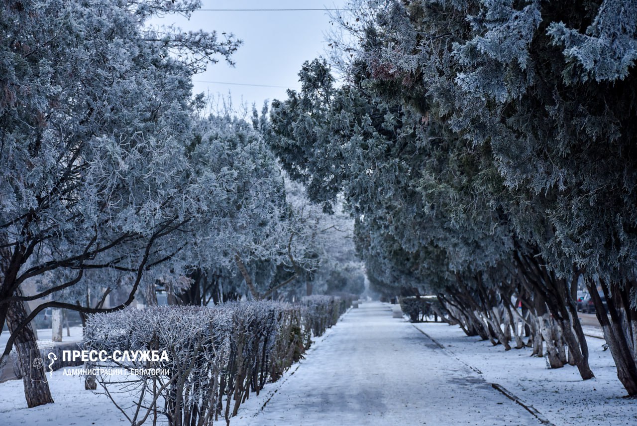 Зима продолжает радовать евпаторийцев своей волшебной красотой! В эти морозные дни природа подарила городу настоящее волшебство: деревья, окутанные серебристым инеем, словно облачились в кружевные наряды, а улицы обрели сказочный облик.