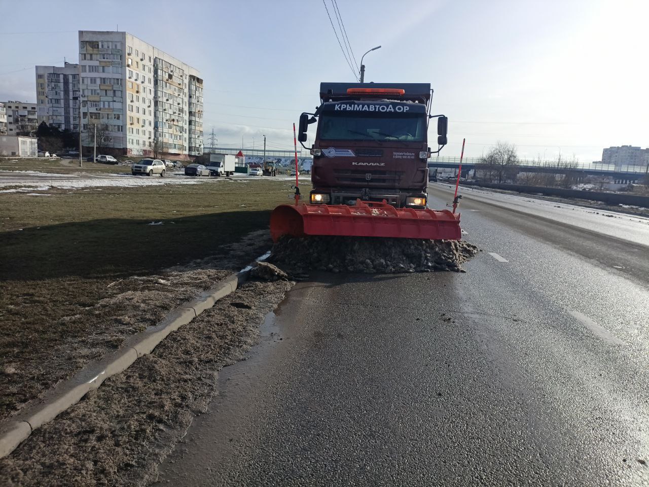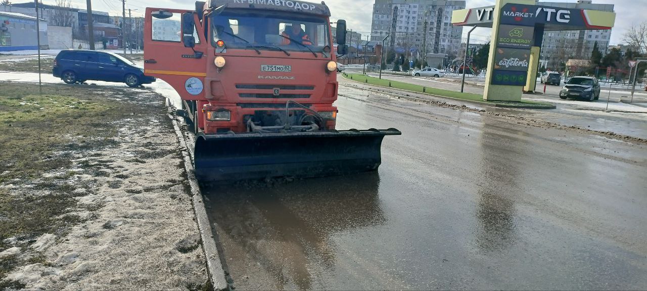 С наступлением плюсовой температуры сотрудники Керченского филиала ГУП РК «Крымавтодор» приступили к механизированной уборке городских дорог.