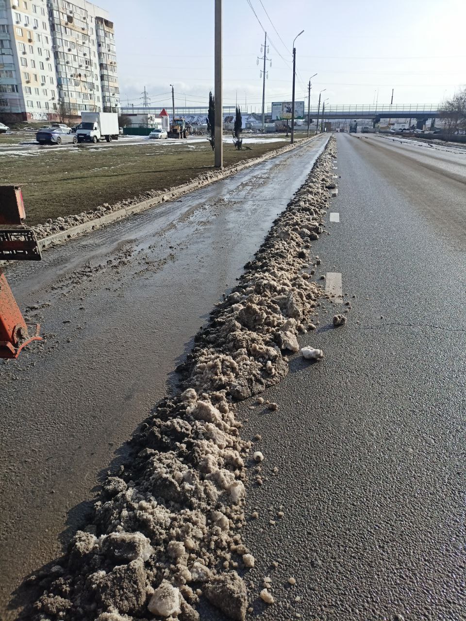Сегодня с утра комбинированными дорожными машинами ведётся очистка от снега прибордюрных зон. Три КДМ работают в разных районах.