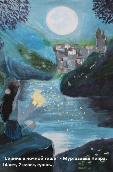 – Муртазаева Нияра — лауреат I степени в номинации «Иллюстрация», работа «Сияние в ночной тиши»;