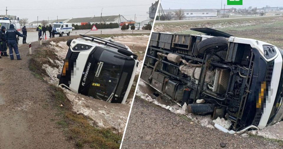 В Крыму опрокинулся рейсовый автобус с пассажирами, следовавший по маршруту Симферополь Черноморское.