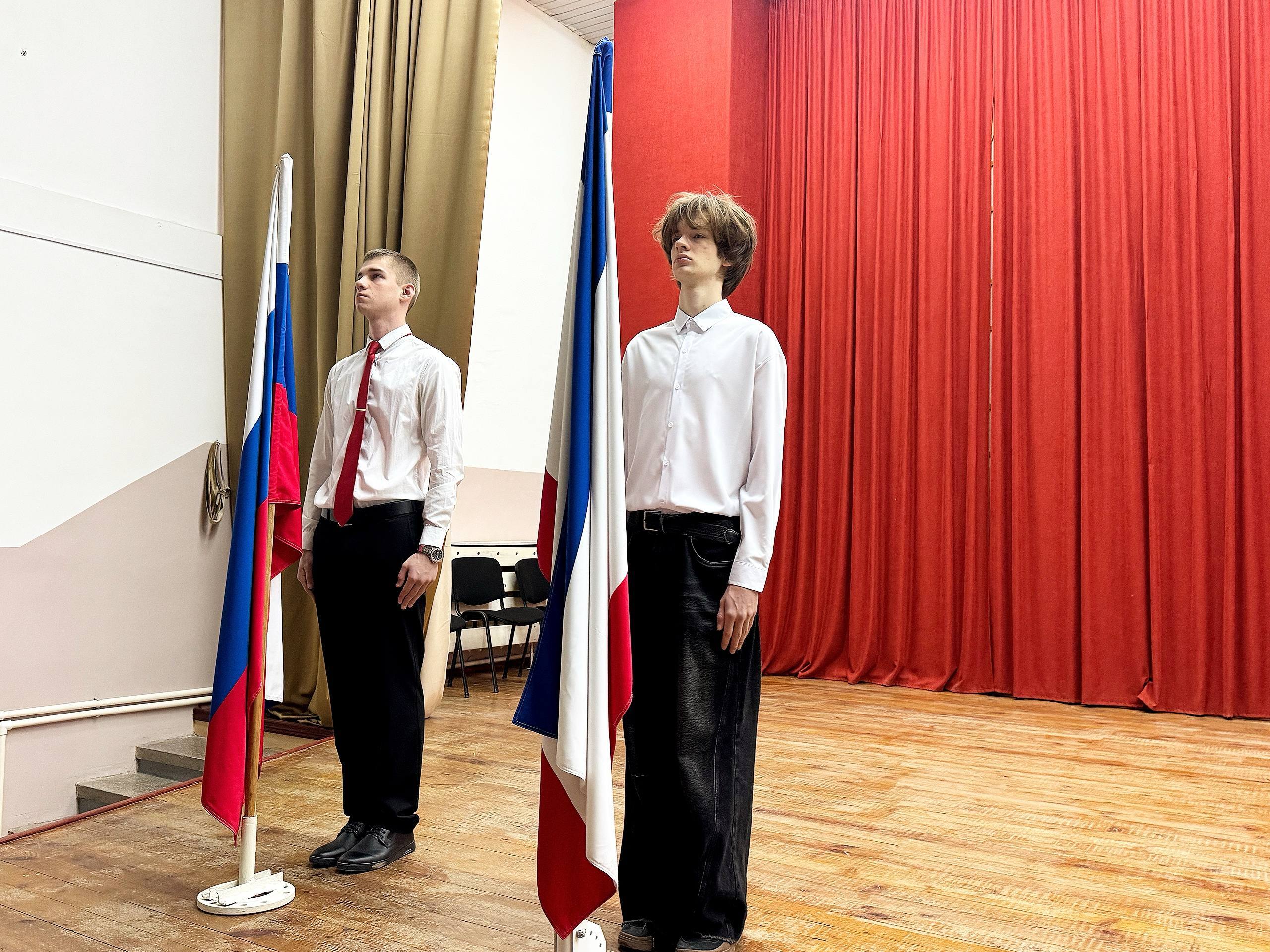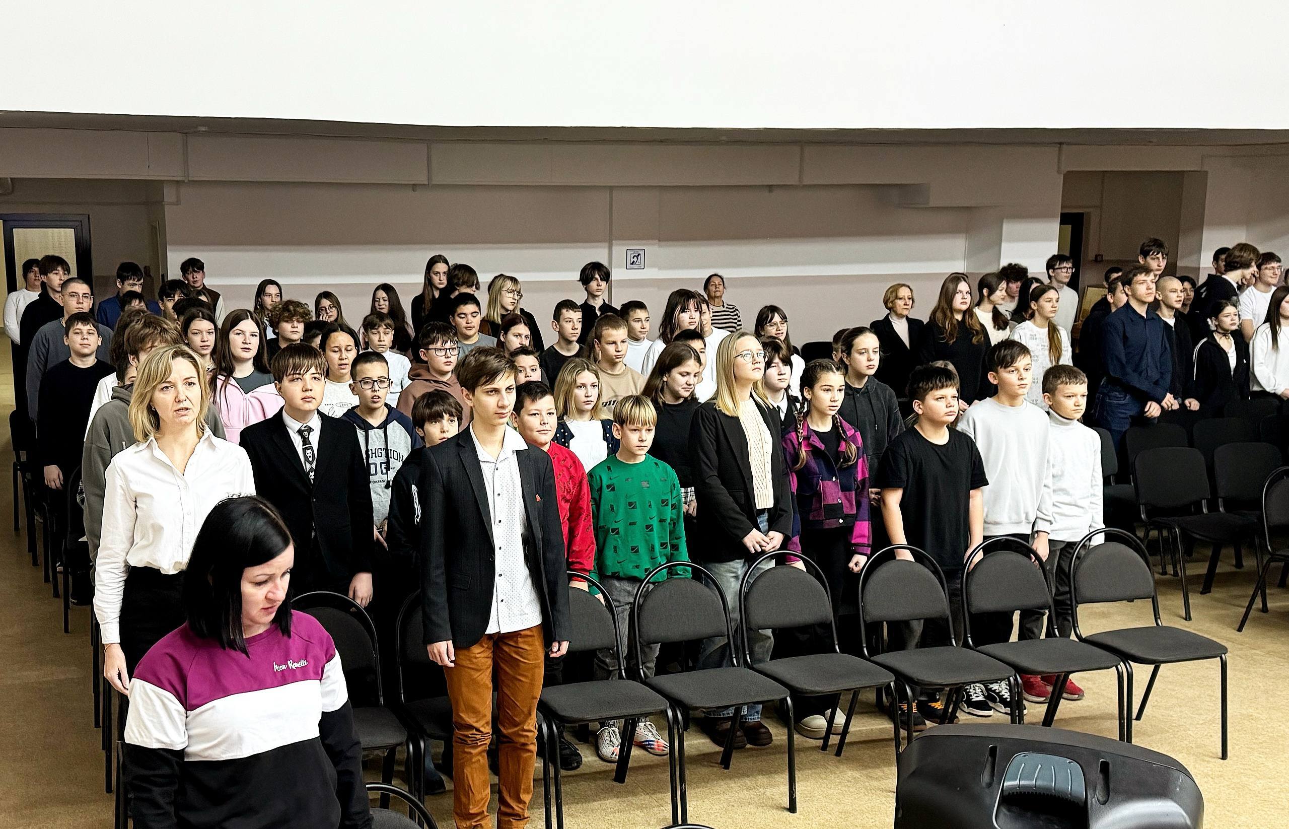 Одна из мероприятий прошло в Черноморской средней школе №3 им. Ф. Пудовкина. Здесь прошла общешкольная линейка, собравшая учащихся разных классов.