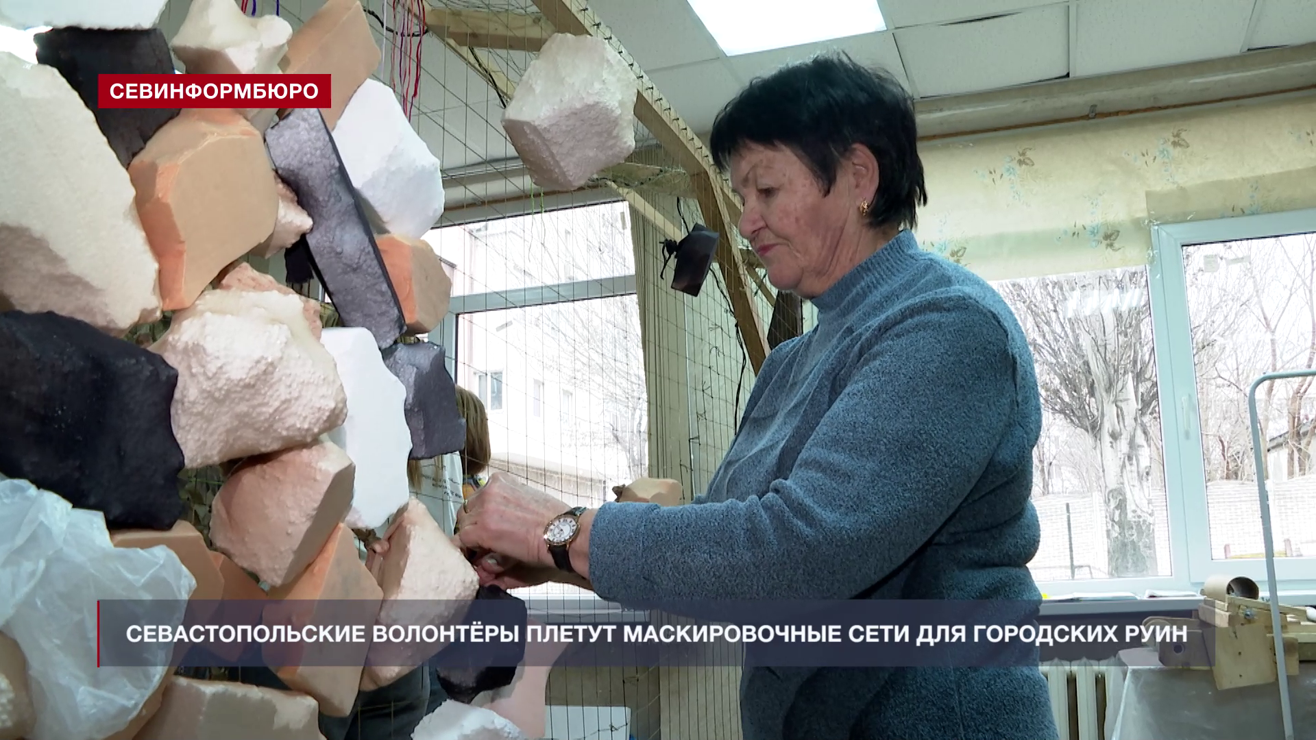 Маскировка на открытой местности – одна задача. Но как скрыть позицию среди бетонных обломков и кирпичных завалов? Группа «Огни Севастополя» освоила технологию изготовления специальных маскировочных сетей – «городские руины».