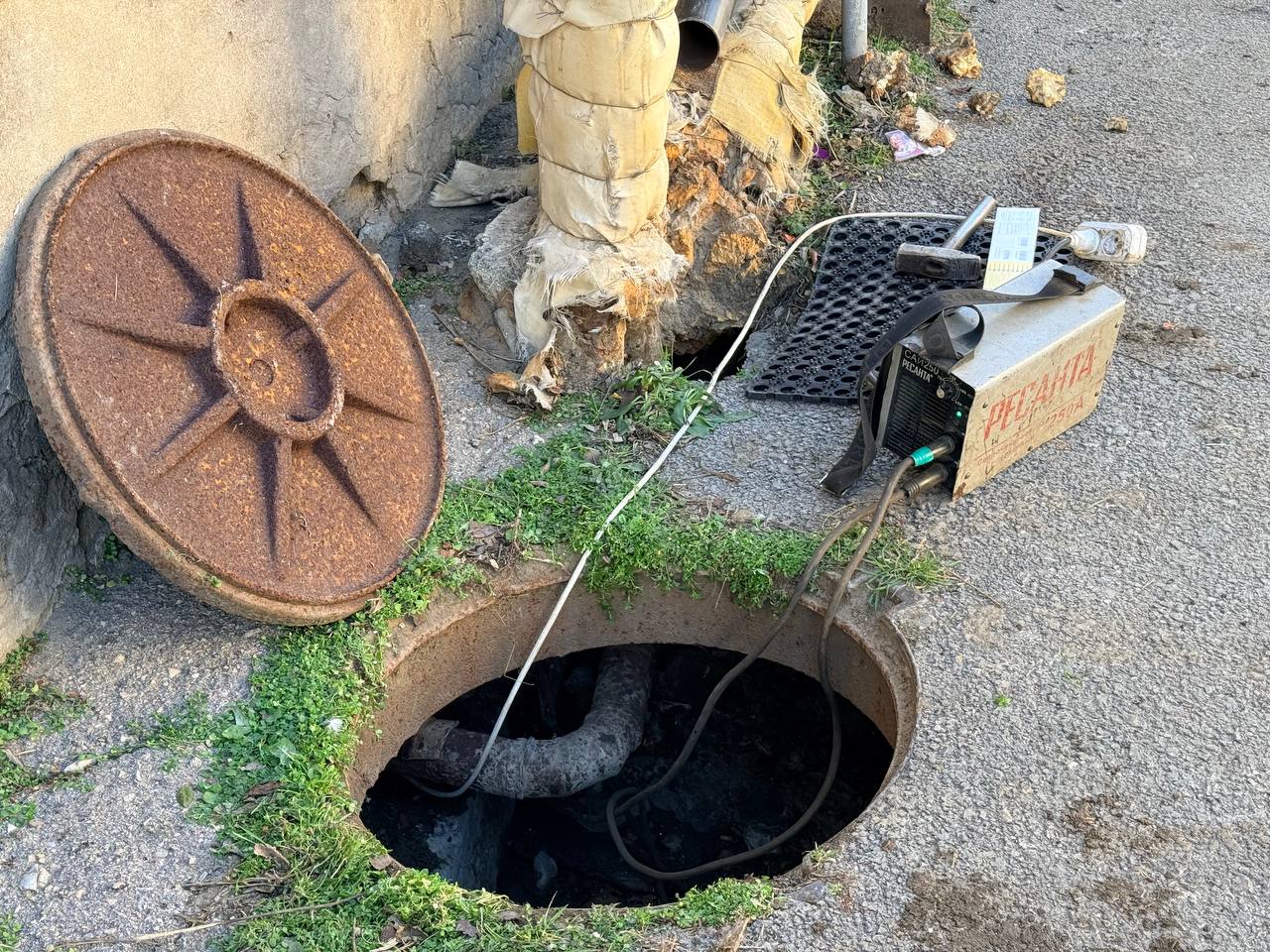 С утра управляющая организация организовала ремонтные работы. Бригада в составе слесарей-сантехников и сварщика провела замену поврежденного участка системы отопления с использованием сварочных работ.