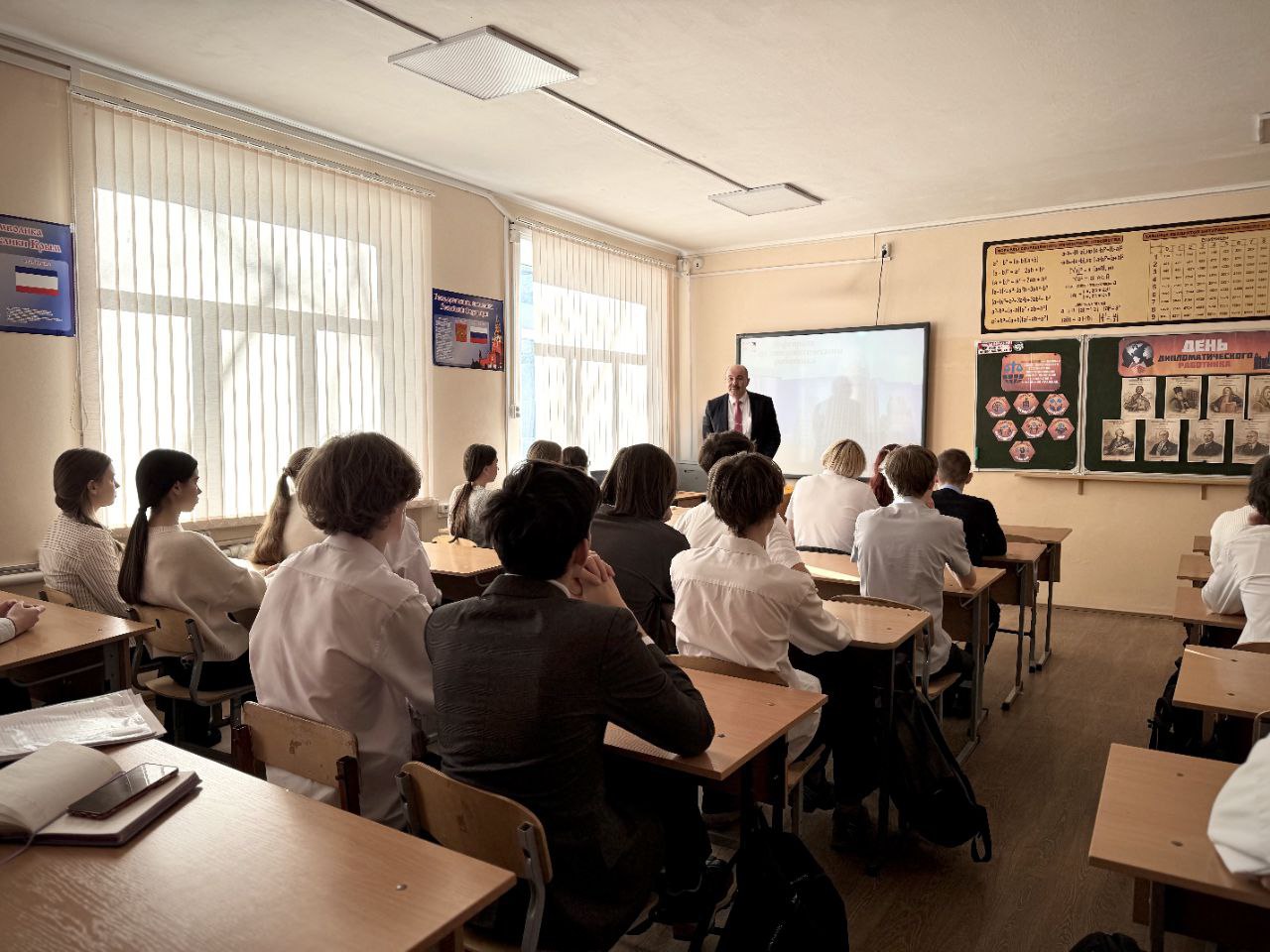 В День дипломатического работника в МБОУ «СОШ №18 им. И. И. Богатыря» для старшеклассников прошёл открытый урок «Слушать, слышать и договариваться. Кто такие дипломаты?».