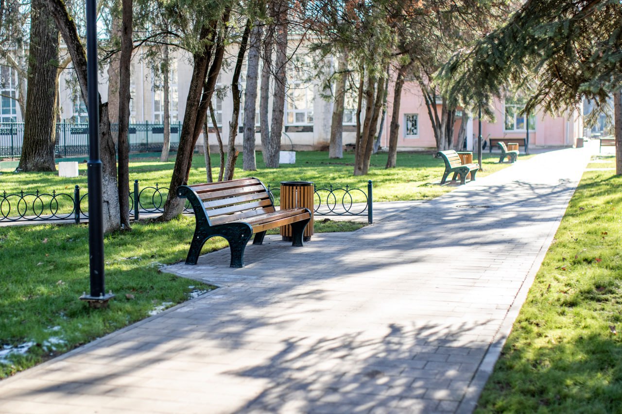 Там появятся новые спортивные и детские площадки, места для отдыха, благоустроенные дорожки, фонтан, уличная мебель, системы видеонаблюдения и освещения.