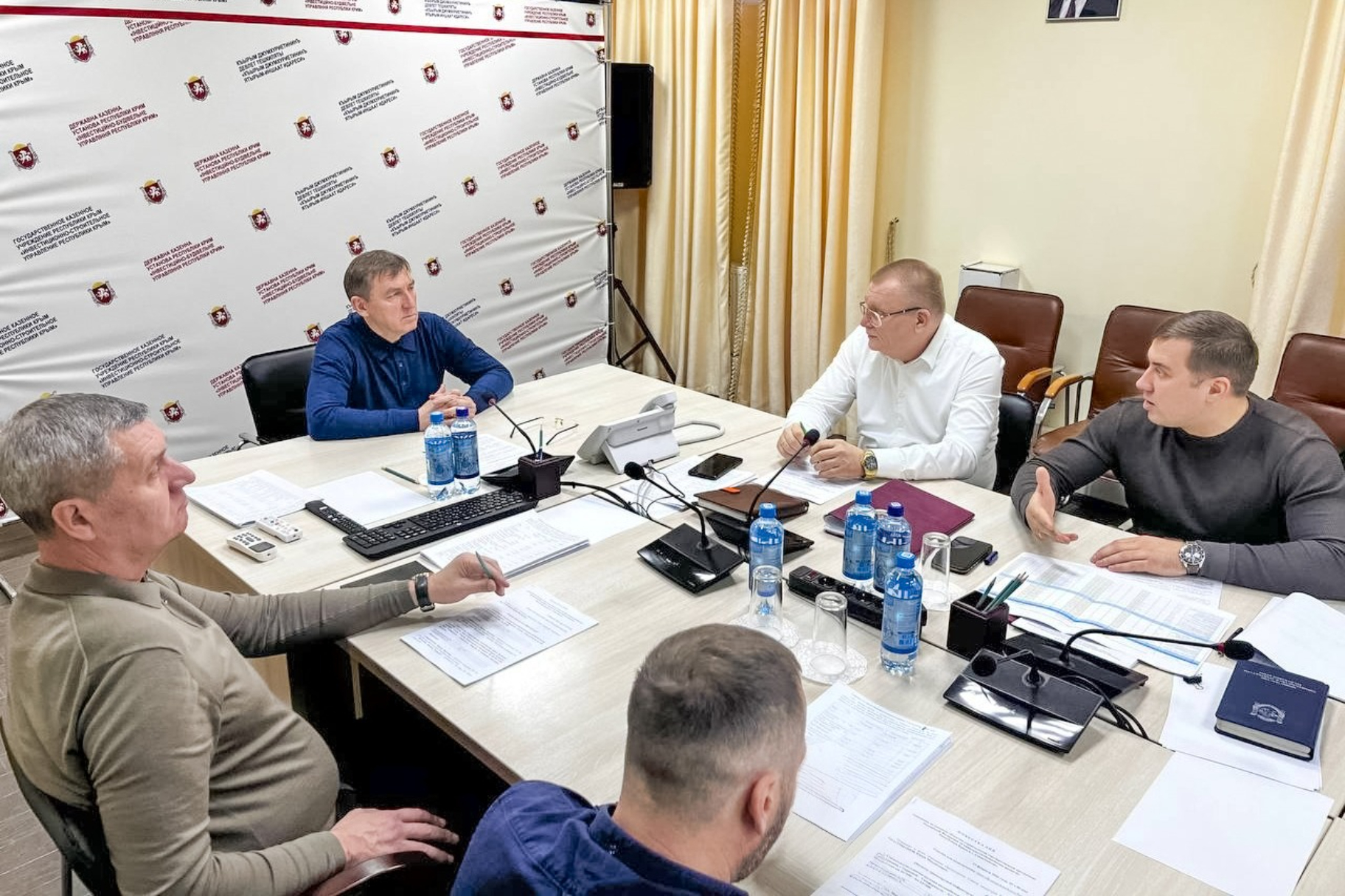 Председатель Совета министров республики крым Юрий Гоцанюк провел совещание в ГКУ «Инвестстрой Республики Крым». В ходе встречи с заказчиком и подрядчиками были детально обсуждены вопросы реализации проектов государственной программы Российской Федерации “Социально-экономическое развитие Республики Крым и г.Севастополя”, графики производства работ и меры по ускорению процесса.