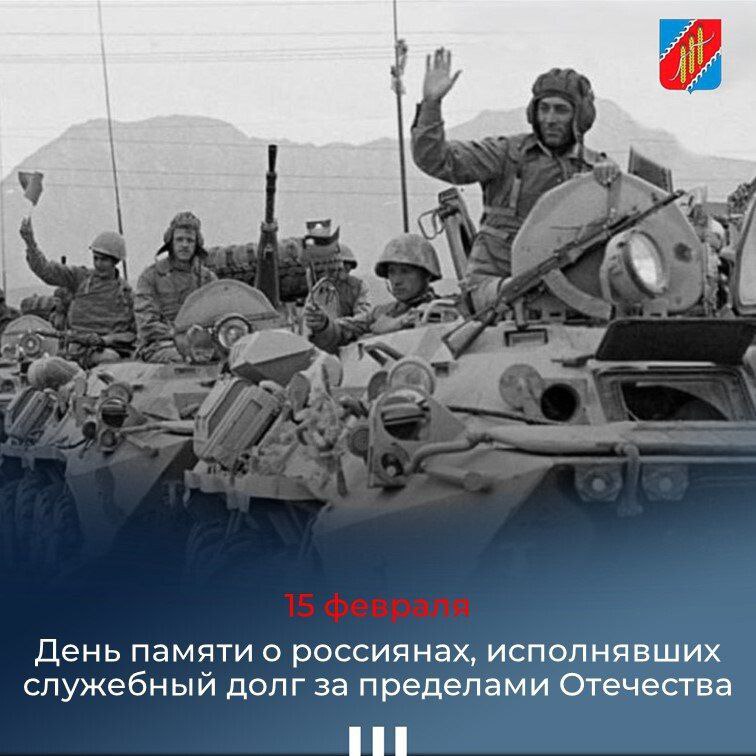 Сегодня, 15 февраля, наша страна отмечает важную памятную дату — День памяти о россиянах, исполнявших служебный долг за пределами Отечества. Этот день посвящён тем, кто принял участие в более чем тридцати вооруженных конфликтах за границей, проявив мужество и верность долгу перед своей страной.