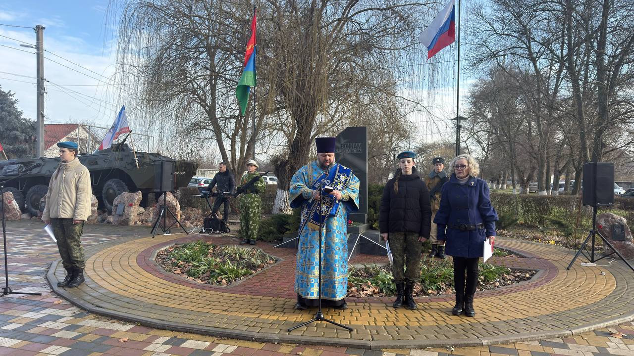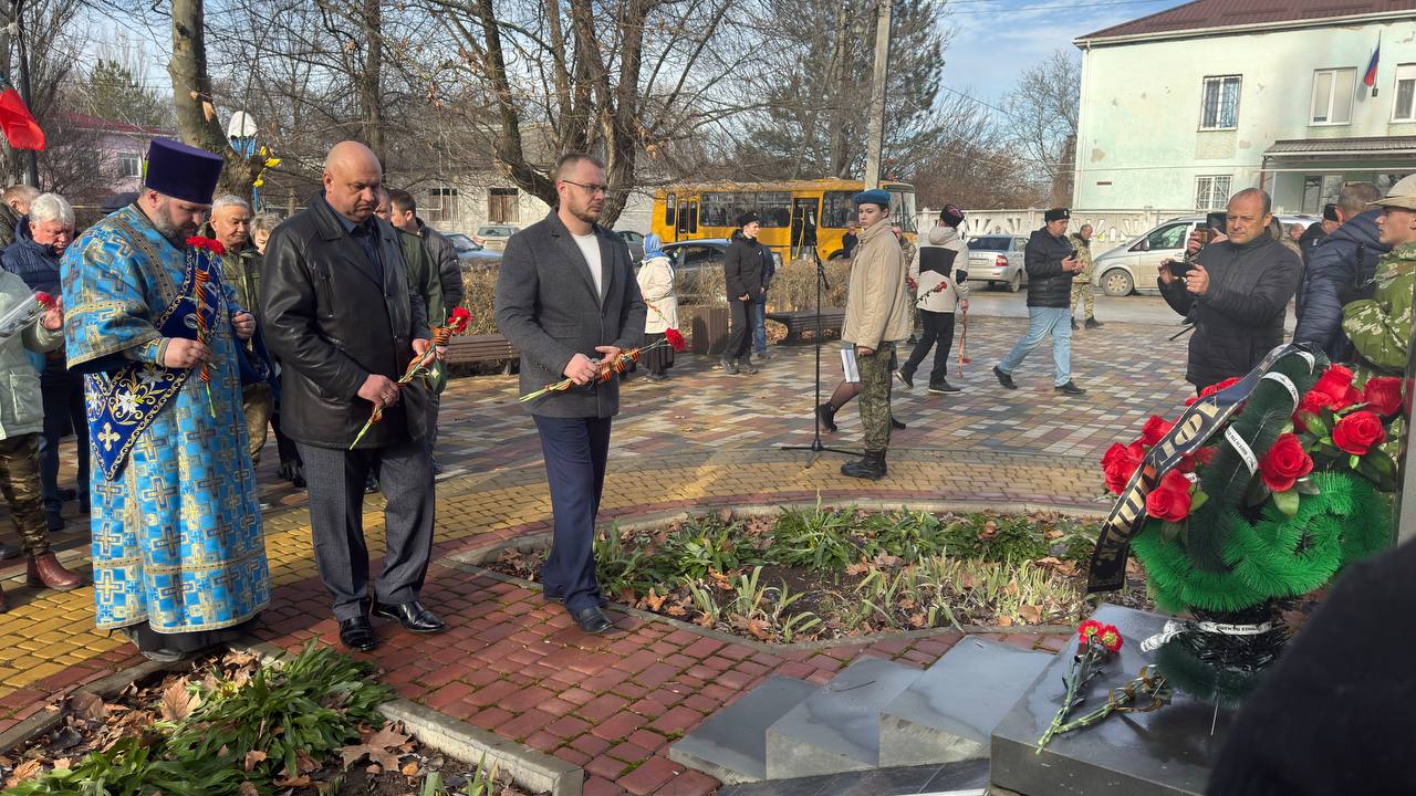 Отец Вячеслав провел панихиду по погибшим. Почтили минутой молчания тех, кто не вернулся из боя, и возложили цветы.