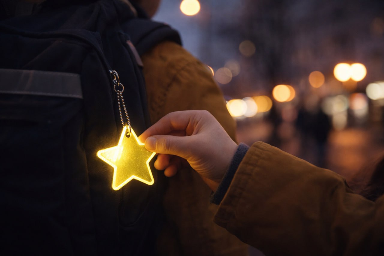 Особое внимание — безопасности детей. Светоотражатель должен быть заметен и закреплён так, чтобы не закрывался одеждой или портфелем.