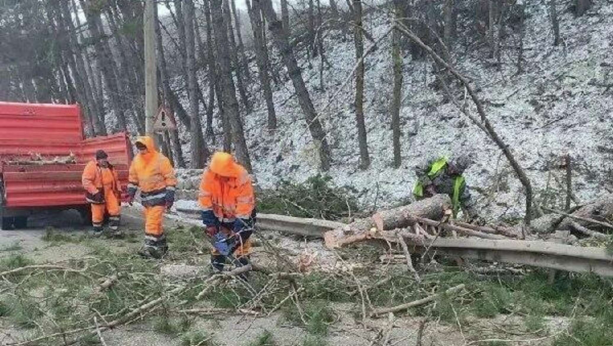 Кроме того, коммунальные службы продолжают расчистку территорий от поваленных деревьев. Работы ведутся в поселке Советское, в Гурзуфе в районе разворотного кольца, а также на улице Крупской в Ялте.