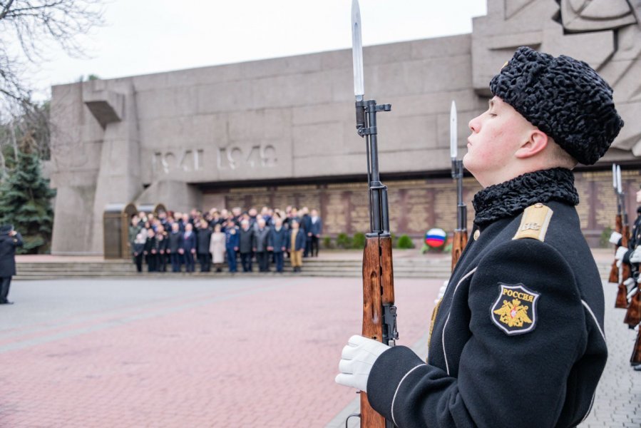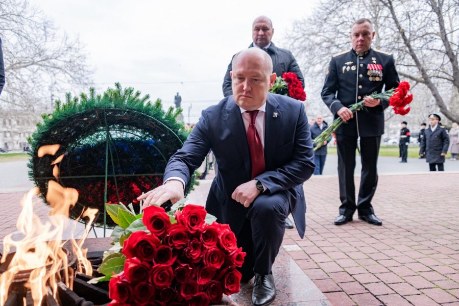 Традиционно утром губернатор Михаил Развожаев вместе с командующим Черноморского флота Сергеем Михайловичем Пинчуком, представителями силовых и федеральных ведомств, Черноморского флота, общественниками, депутатами Законодательного Собрания, участниками программы «Севастополь — город героев» возложил цветы к мемориалу героической обороны Севастополя 1941-1942 гг.